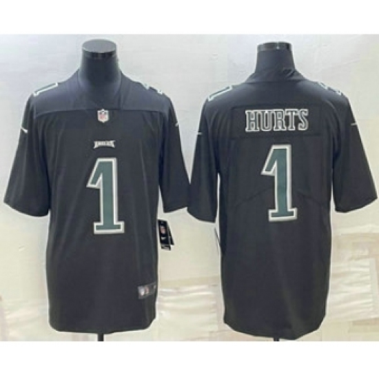>Men's Philadelphia Eagles #1 Jalen Hurts Black Vapor Untouchable Stitched Fashion Limited Jersey
