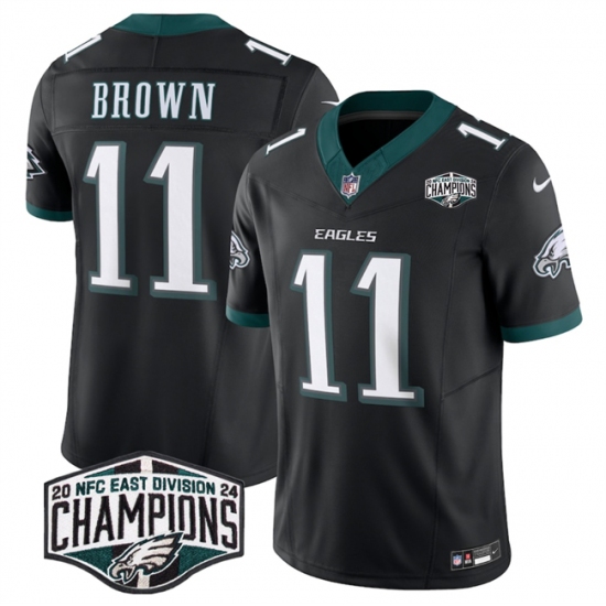 Men's Philadelphia Eagles #11 A.J. Brown Black 2024 New NFC East Champions F.U.S.E. Vapor Untouchable Limited Stitched Football Jersey