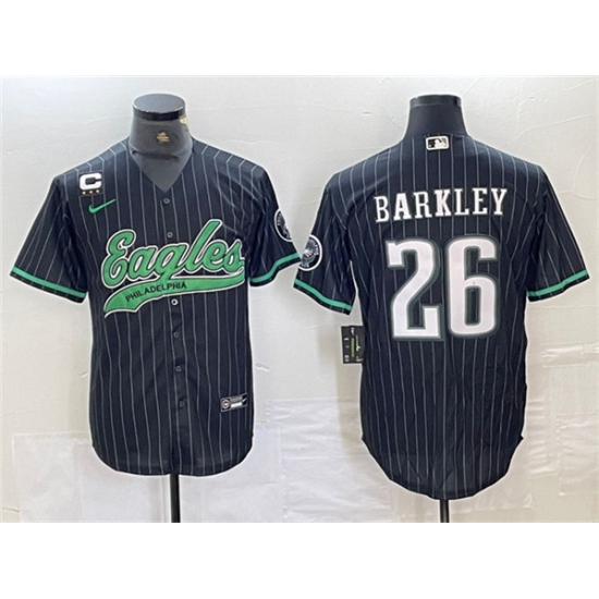 >Men's Philadelphia Eagles #26 Saquon Barkley Black With 3-star C Cool Base Baseball Stitched Jerseys