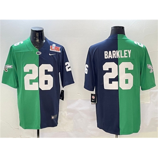>Men's Philadelphia Eagles #26 Saquon Barkley Green & Navy Split 2025 Super Bowl LIX Vapor Untouchable Limited Football Stitched Jersey