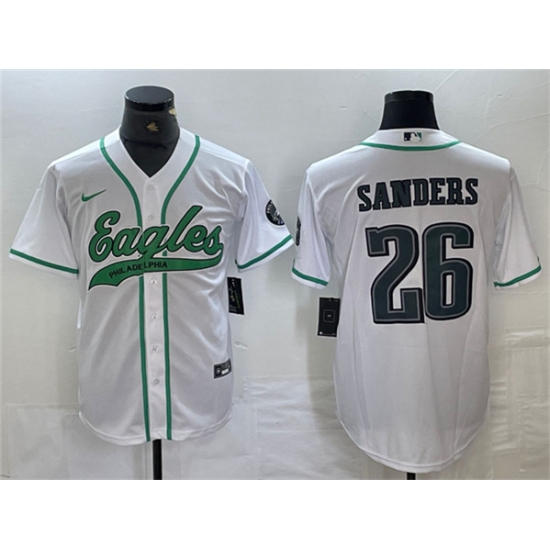 Men's Philadelphia Eagles #26 Saquon Barkley White Cool Base Baseball Stitched Jersey
