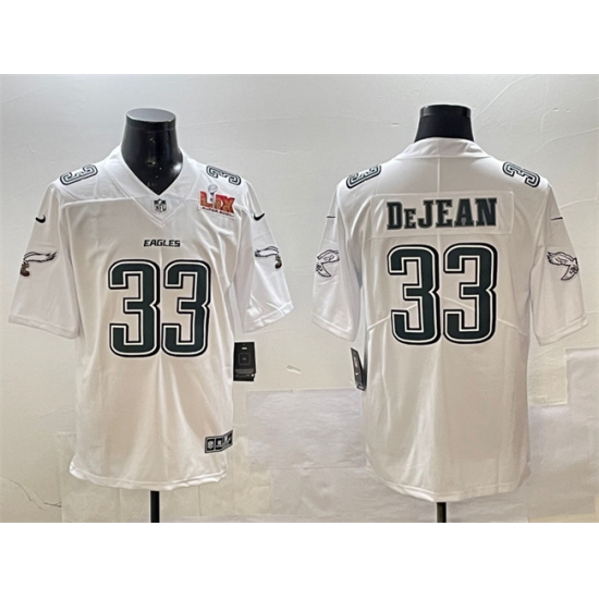 Men's Philadelphia Eagles #33 Cooper DeJean White 2025 Super Bowl LIX Fashion New Vapor Untouchable Limited Stitched Football Jersey