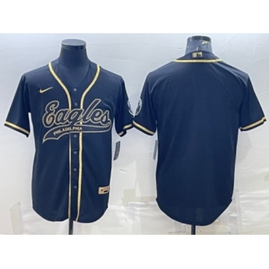 >Men's Philadelphia Eagles Blank Black Gold With Patch Cool Base Stitched Baseball Jersey