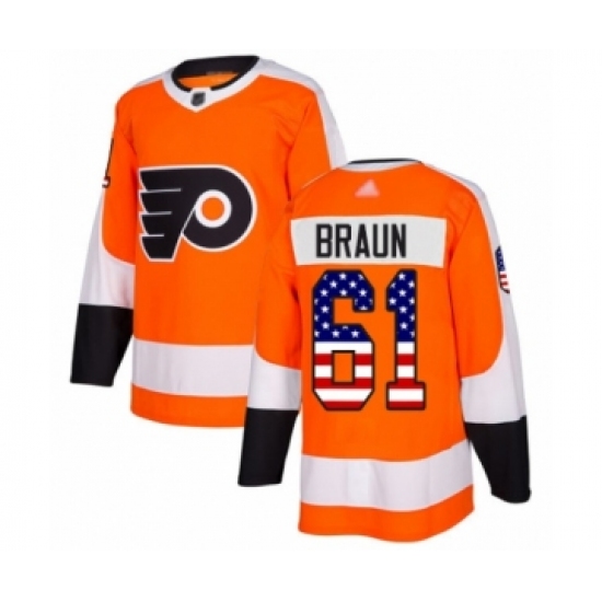 Men's Philadelphia Flyers #61 Justin Braun Authentic Orange USA Flag Fashion Hockey Jersey
