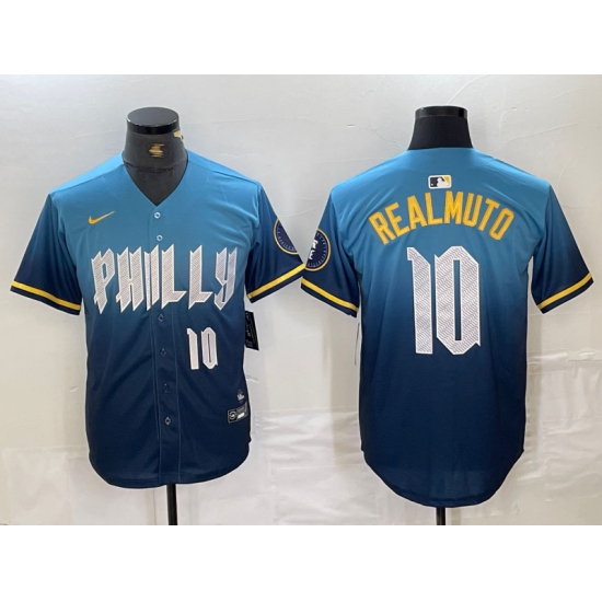Men's Philadelphia Phillies #10 JT Realmuto Number Blue 2024 City Connect Limited Stitched Jersey