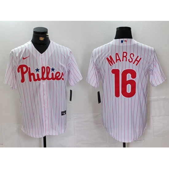 Men's Philadelphia Phillies #16 Brandon Marsh White Pinstripe Stitched Cool Base Jersey