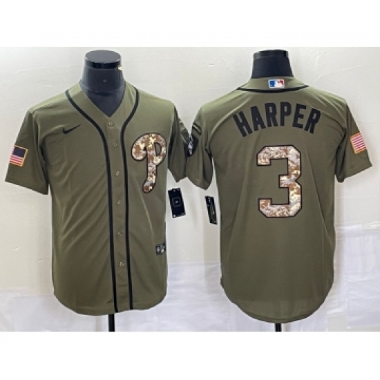 Men's Philadelphia Phillies #3 Bryce Harper Green Salute to Service Cool Base Stitched Nike Jersey