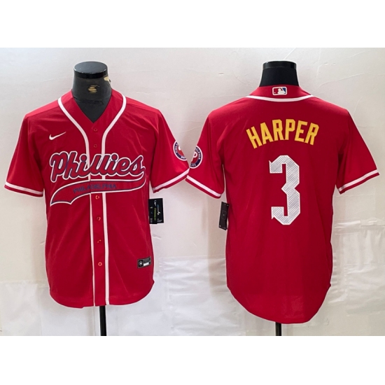 Men's Philadelphia Phillies #3 Bryce Harper Red Cool Base Stitched Baseball Jersey