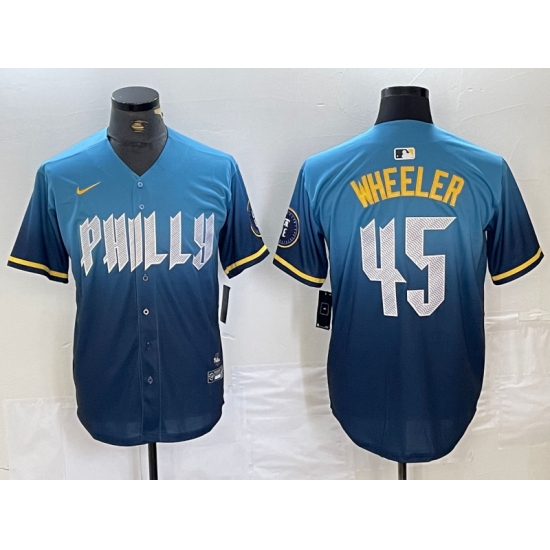 Men's Philadelphia Phillies #45 Zack Wheeler Blue 2024 City Player Number Cool Base Stitched Jerseys