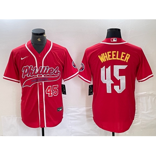 Men's Philadelphia Phillies #45 Zack Wheeler Number Red Cool Base Stitched Baseball Jersey