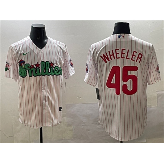 >Men's Philadelphia Phillies #45 Zack Wheeler White Phanatic Cool Base Stitched Jersey