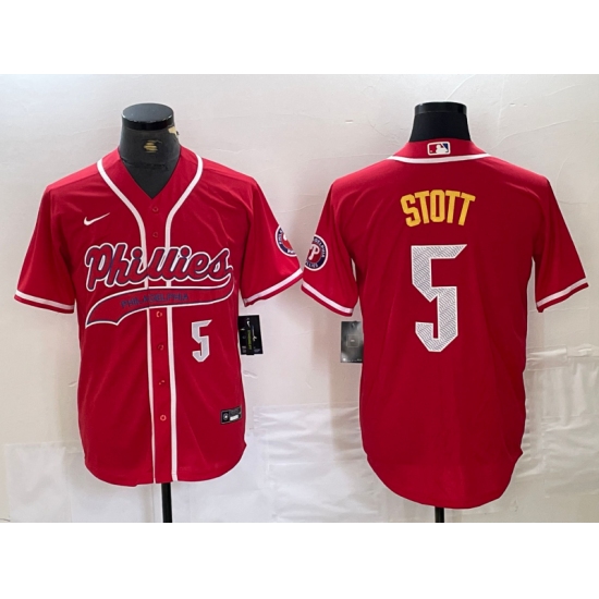 Men's Philadelphia Phillies #5 Bryson Stott Number Red Cool Base Stitched Baseball Jersey