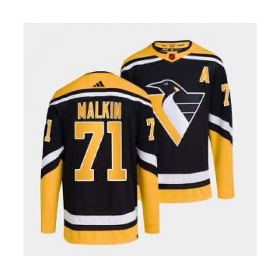 Men's Pittsburgh Penguins #71 Evgeni Malkin Black 2022-23 Reverse Retro Stitched Jersey