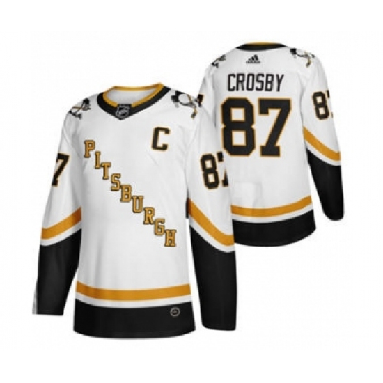 Men's Pittsburgh Penguins #87 Sidney Crosby White 2020-21 Reverse Retro Alternate Hockey Jersey