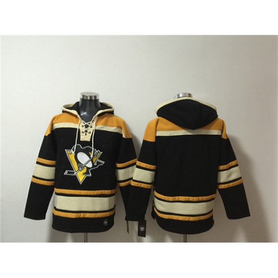 >Men's Pittsburgh Penguins Blank Black Lace-Up Pullover Hoodie