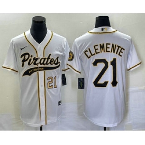 Men's Pittsburgh Pirates #21 Roberto Clemente Number White Cool Base Stitched Baseball Jersey1