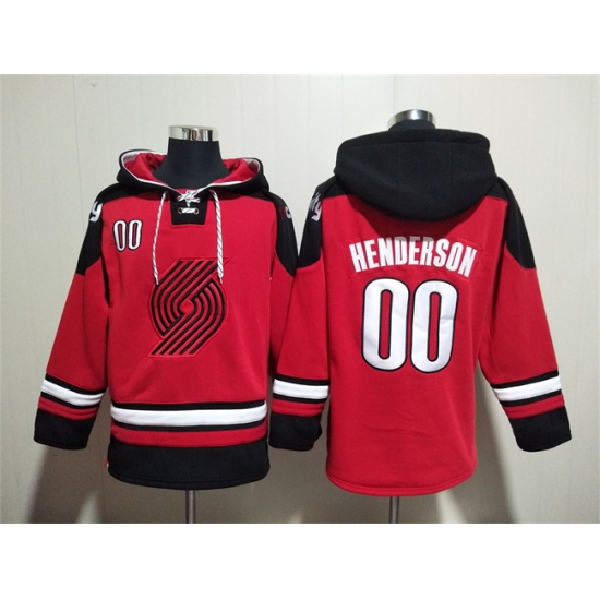 Men's Portland Trail Blazers #00 Scoot Henderson Red Lace-Up Pullover Hoodie