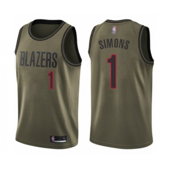 Men's Portland Trail Blazers #1 Anfernee Simons Swingman Green Salute to Service Basketball Jersey