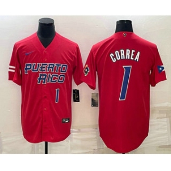 Men's Puerto Rico Baseball #1 Carlos Correa Number 2023 Red World Baseball Classic Stitched Jersey