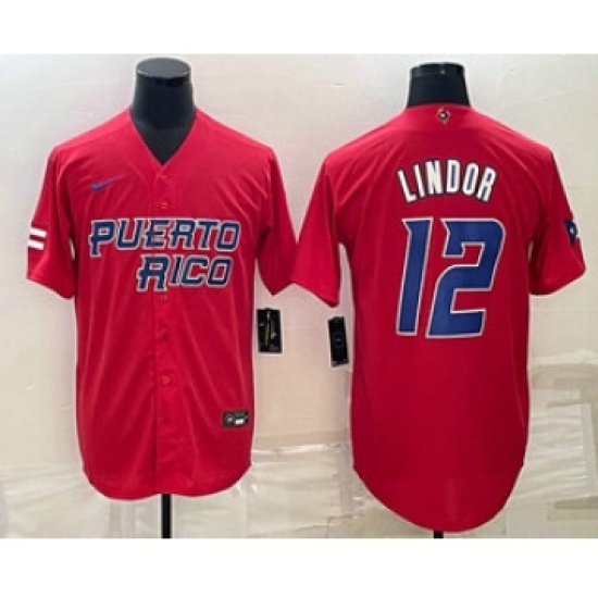 Men's Puerto Rico Baseball #12 Francisco Lindor 2023 Red World Baseball Classic Stitched Jerseys