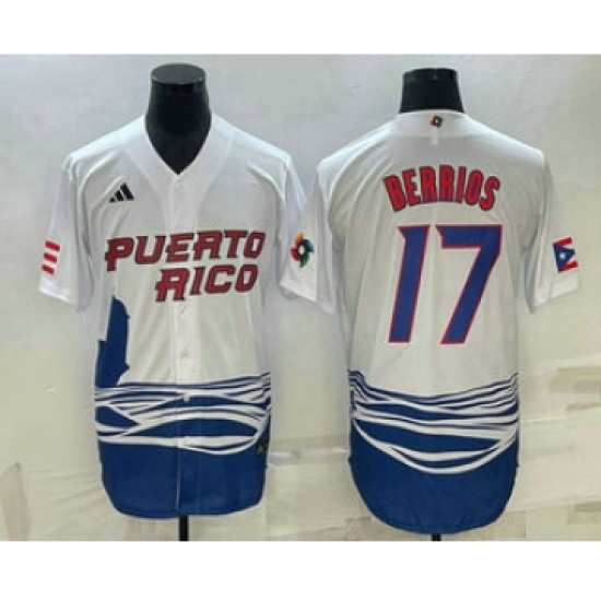 >Men's Puerto Rico Baseball #17 Jose Berrios 2023 White World Baseball Classic Stitched Jerseys