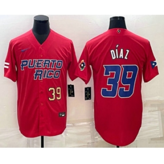 Men's Puerto Rico Baseball #39 Edwin Diaz Number 2023 Red World Baseball Classic Stitched Jerseys