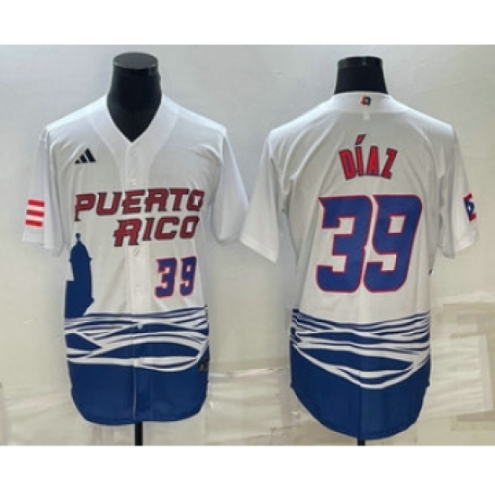 Men's Puerto Rico Baseball #39 Edwin Diaz 2023 White World Baseball Classic Stitched Jerseys