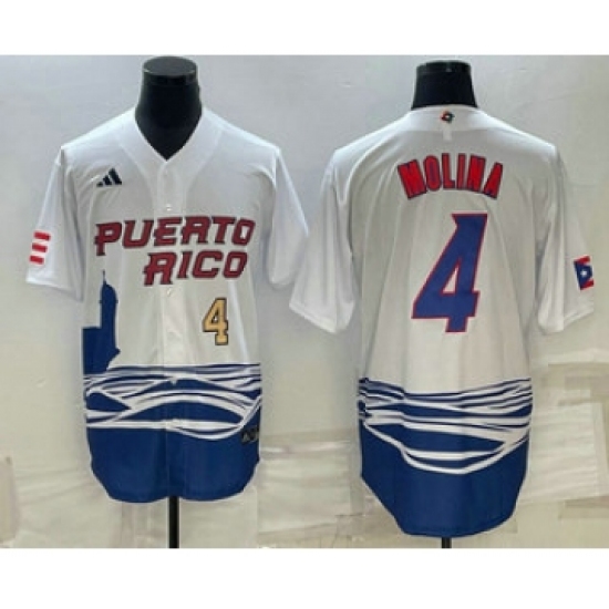 Mens Puerto Rico Baseball #4 Yadier Molina Number 2023 Blue World Baseball Classic Stitched Jersey