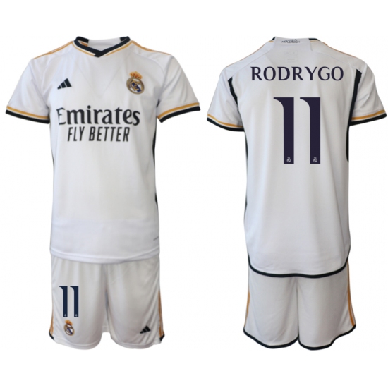 >Men's Real Madrid #11 Rodrygo 2023-24 White Home Soccer Jersey