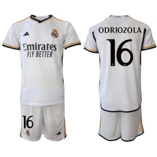 Men's Real Madrid #16 Odriozola 2023-24 White Home Soccer Jersey