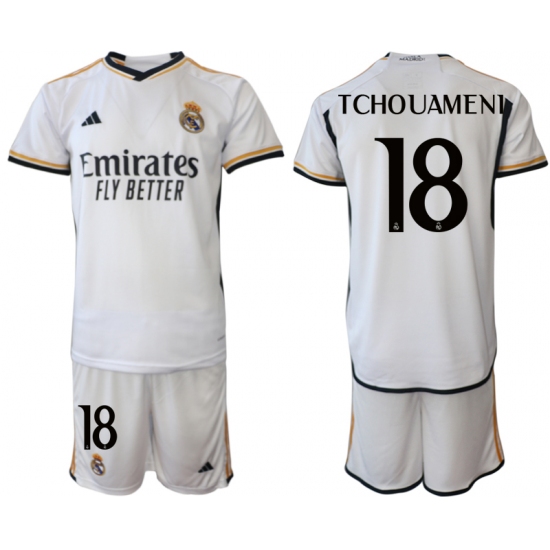 Men's Real Madrid #18 Tchouameni 2023-24 White Home Soccer Jersey
