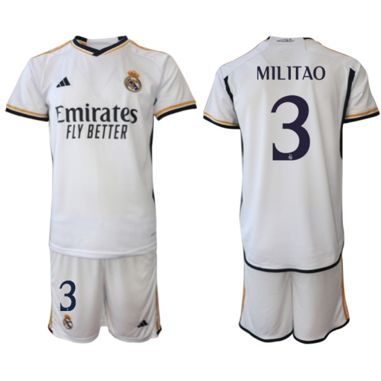 Men's Real Madrid #3 Militao 2023-24 White Home Soccer Jersey