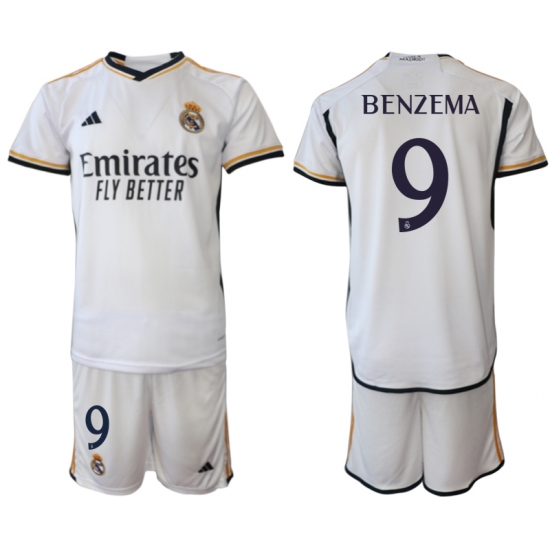 >Men's Real Madrid #9 Benzema 2023-24 White Home Soccer Jersey