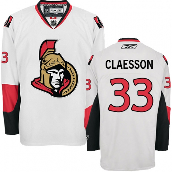 Home>NHL>Ottawa Senators>Fredrik Claesson>Men's Reebok Ottawa Senators #33 Fredrik Claesson Authentic White Away NHL Jersey