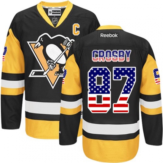 Men's Reebok Pittsburgh Penguins #87 Sidney Crosby Premier Black/Gold USA Flag Fashion NHL Jersey