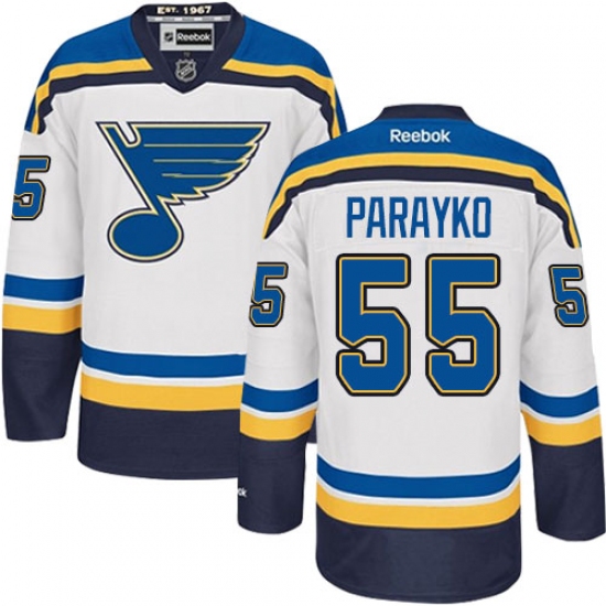 Home>NHL>St. Louis Blues>Colton Parayko>Men's Reebok St. Louis Blues #55 Colton Parayko Authentic White Away NHL Jersey