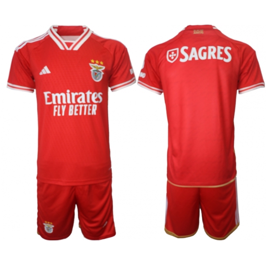 >Men's SL Benfica Blank Red Stripe 2023-24 Home Soccer Jersey