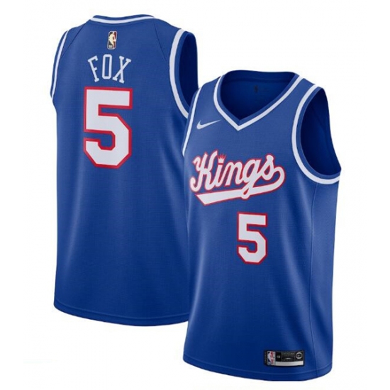 >Men's Sacramento Kings #5 De'Aaron Fox Blue 2019-20 Hardwood Classics Swingman Stitched Basketball Jersey