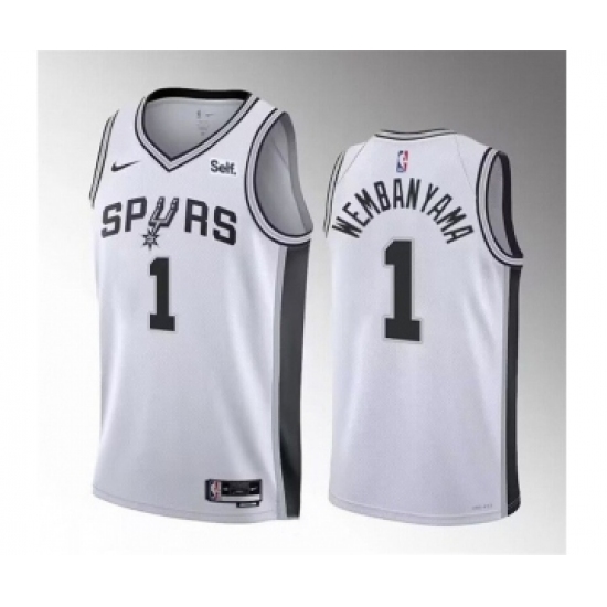 >Men's San Antonio Spurs #1 Victor Wembanyama White 2022-23 Association Edition Stitched Basketball Jersey