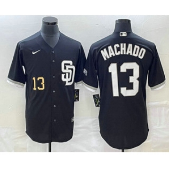 Men's San Diego Padres #13 Manny Machado Number Black 2023 Cool Base Stitched Jersey