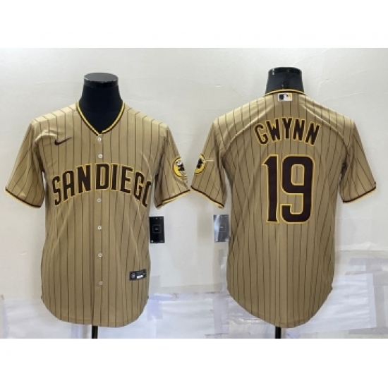 Men's San Diego Padres #19 Tony Gwynn Tan 'For Peter' And Petco Park 20th Limited Stitched Baseball Jersey