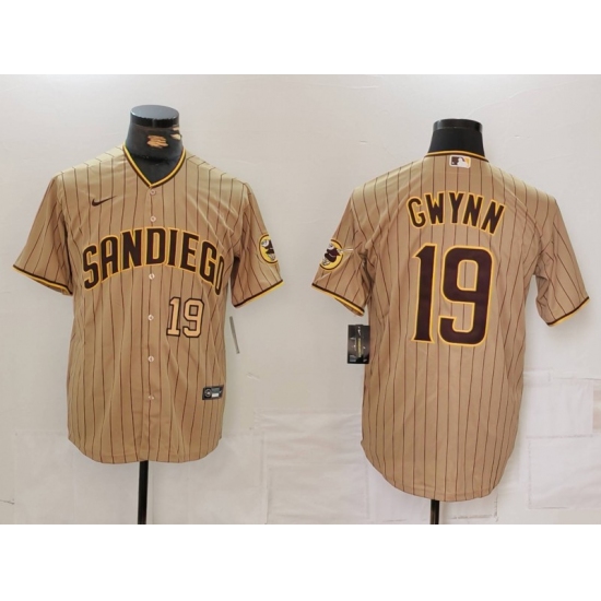 Men's San Diego Padres #19 Tony Gwynn Khaki Team Logo Stitched Cool Base Nike Jerseys