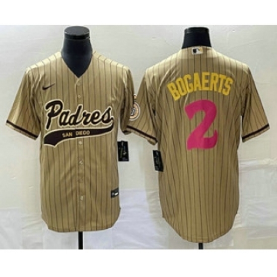 >Men's San Diego Padres #2 Xander Bogaerts Tan Pinstripe 2023 City Connect Cool Base Stitched Jersey 1