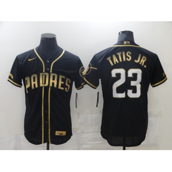 >Men's San Diego Padres #23 Fernando Tatis Jr. Black Gold Realtree Collection Jersey