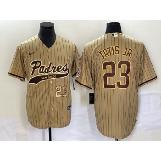 Men's San Diego Padres #23 Fernando Tatis Jr Number Tan NEW 2023 Cool Base Stitched Jersey