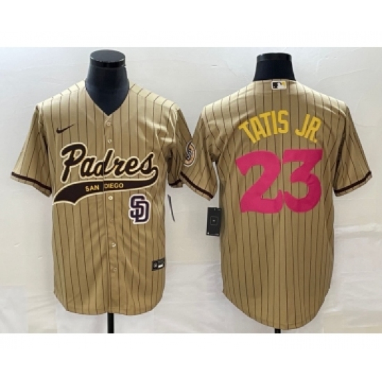 Men's San Diego Padres #23 Fernando Tatis Jr Tan NEW 2023 City Connect Cool Base Stitched Jersey 1