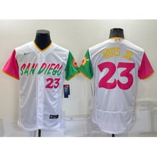 Men's San Diego Padres #23 Fernando Tatis Jr White Number 2022 City Connect Flex Base Stitched Jersey