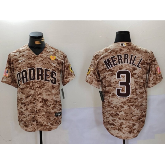 >Men's San Diego Padres #3 Jackson Merrill Camo With PS Cool Base Stitched Jersey