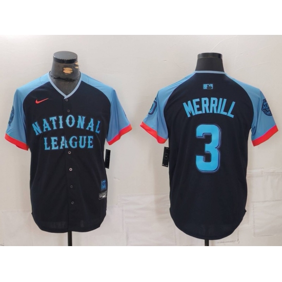 >Men's San Diego Padres #3 Jackson Merrill Navy 2024 All Star Limited Stitched Jersey