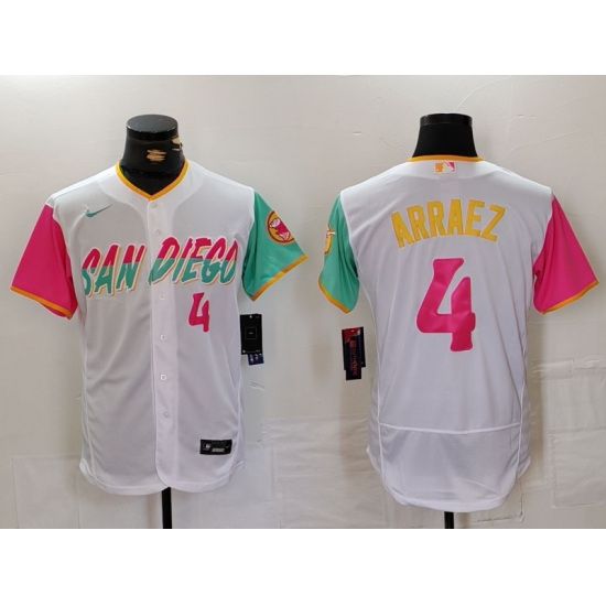 >Men's San Diego Padres #4 Luis Arraez Number White 2023 City Connect Flex Base Stitched Jersey